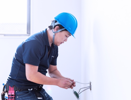仮の電気を通す作業から、住宅の完成まで全ての電気施工に関わる工程を担当します。