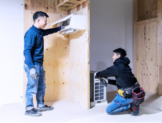 エアコンを取り付け、配管まで全ての工程を担当します。
